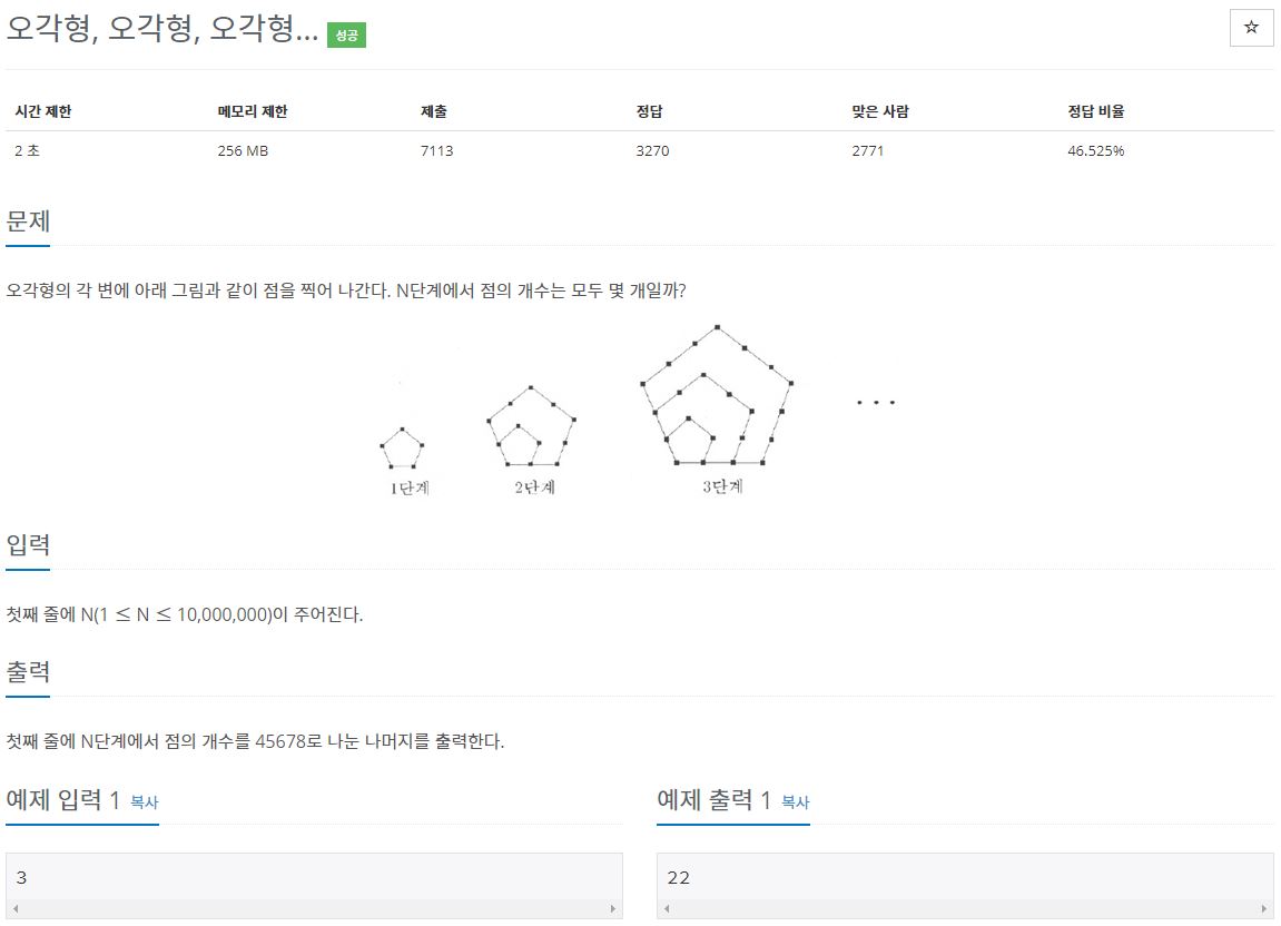 오각형의 단계와 점의 개수로 표에 값을 넣어봤다.