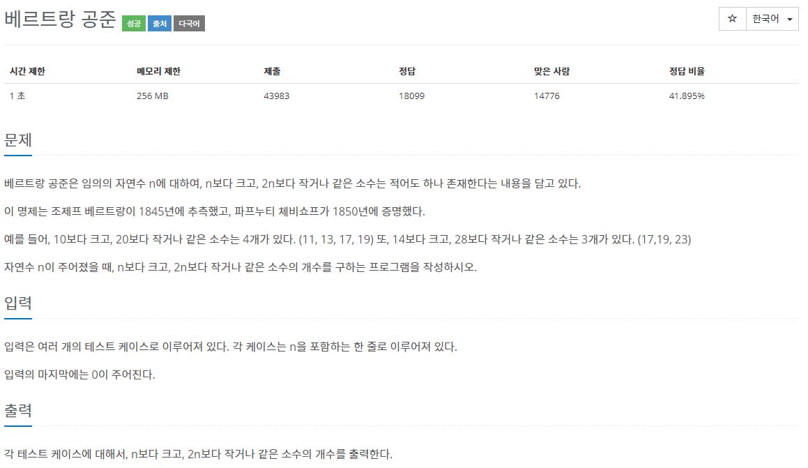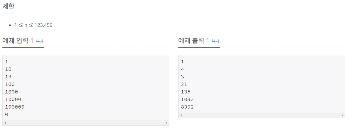 해당 문제는 1929번의 소수 구하기 문제와 유사하므로 풀이 과정은 생략하겠다.