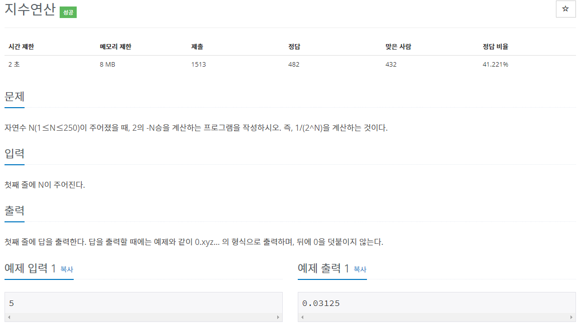 2의 -N승을 계산하면 된다.