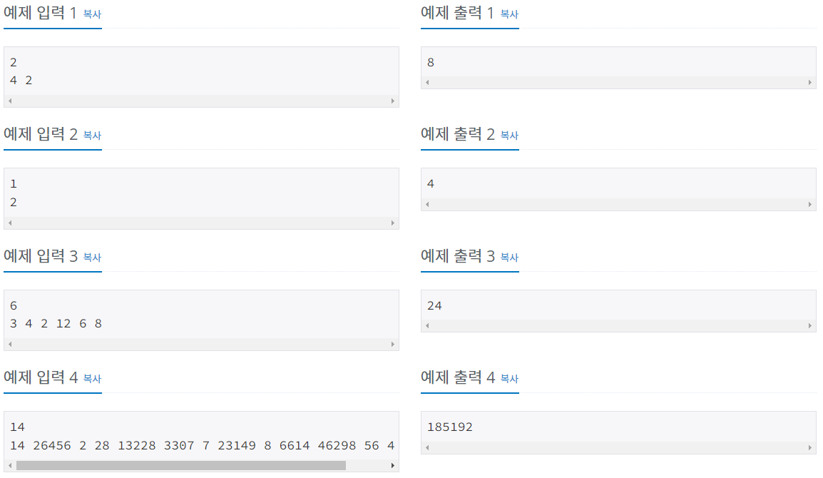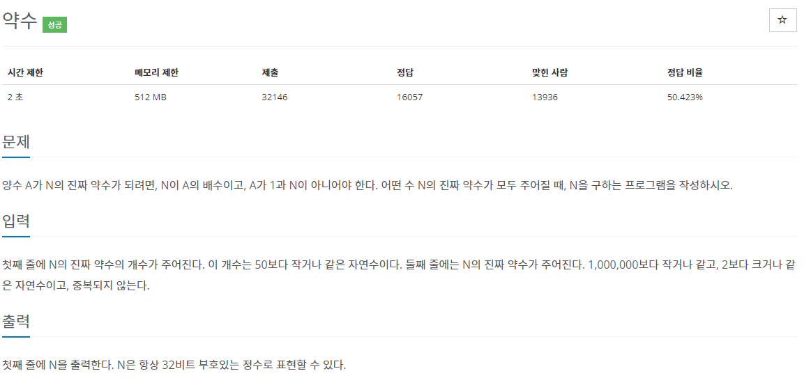 ex) 짝수일 경우, 입력받은 약수들이 list형태로 있기 때문에 최솟값 * 최댓값을 하면 N이 나오게 된다.