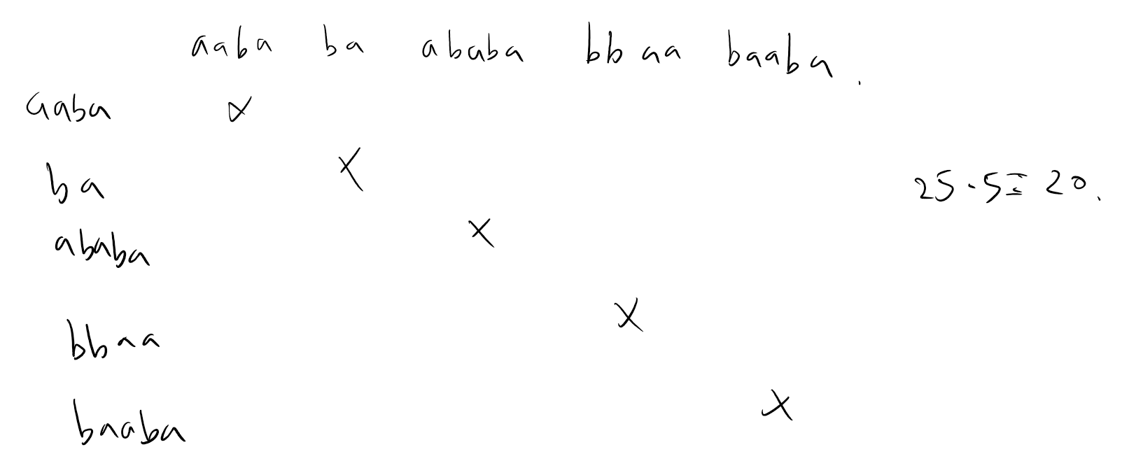 간단히 요약하자면 aaba, ba, ababa, bbaa, baaba 총 5개의 단어가 입력으로 들어왔을 때