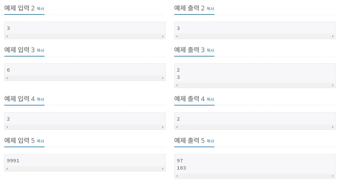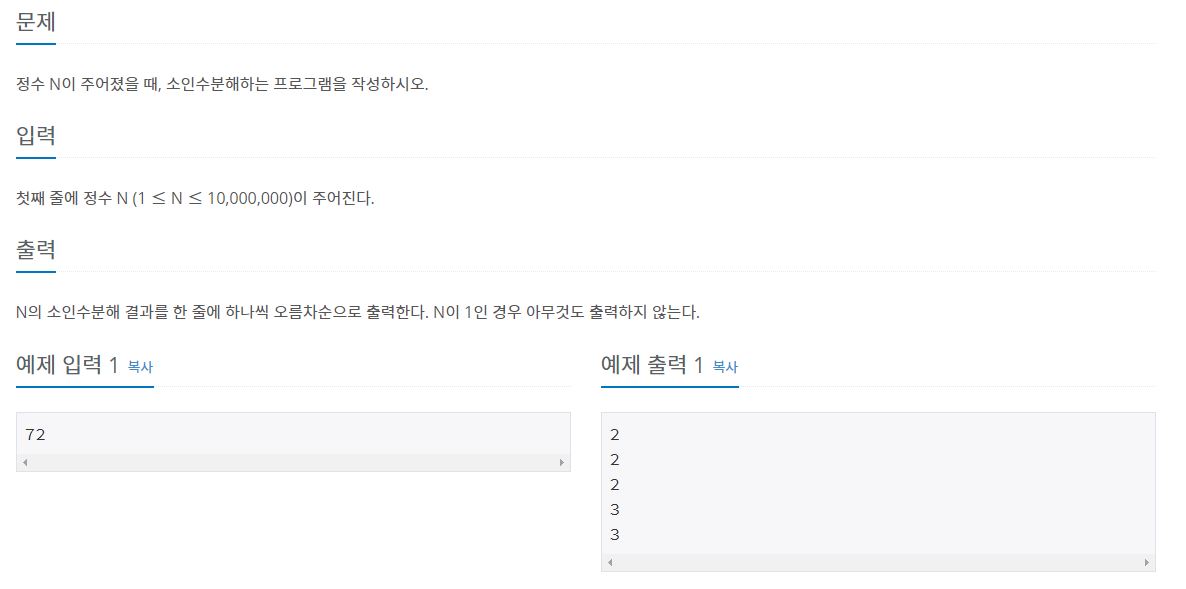 1. 소인수 분해 결과를 한 줄에 하나씩 오름차순으로 출력 (1,2,3 ~~)