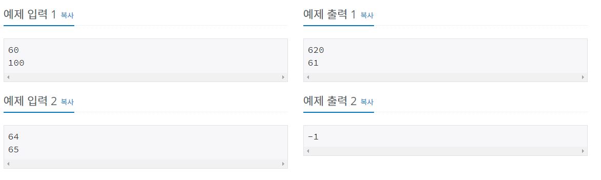 예제2 입력을 보면 64 65를 입력받았을 때 출력이 -1이다.