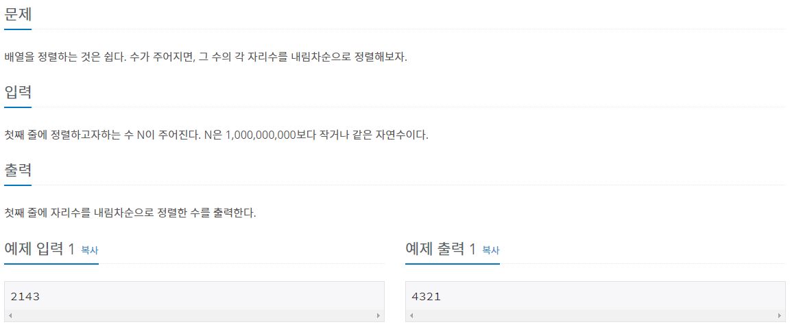 예제 입력1 부분을 보게 되면 2143을 입력받아 4321로 출력하는 것을 볼 수 있다.