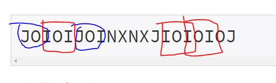 예제 입력 2 같은 경우 겹쳐서 보면 JOI가 1번 IOI가 3번 나온 것을 알 수 있다.