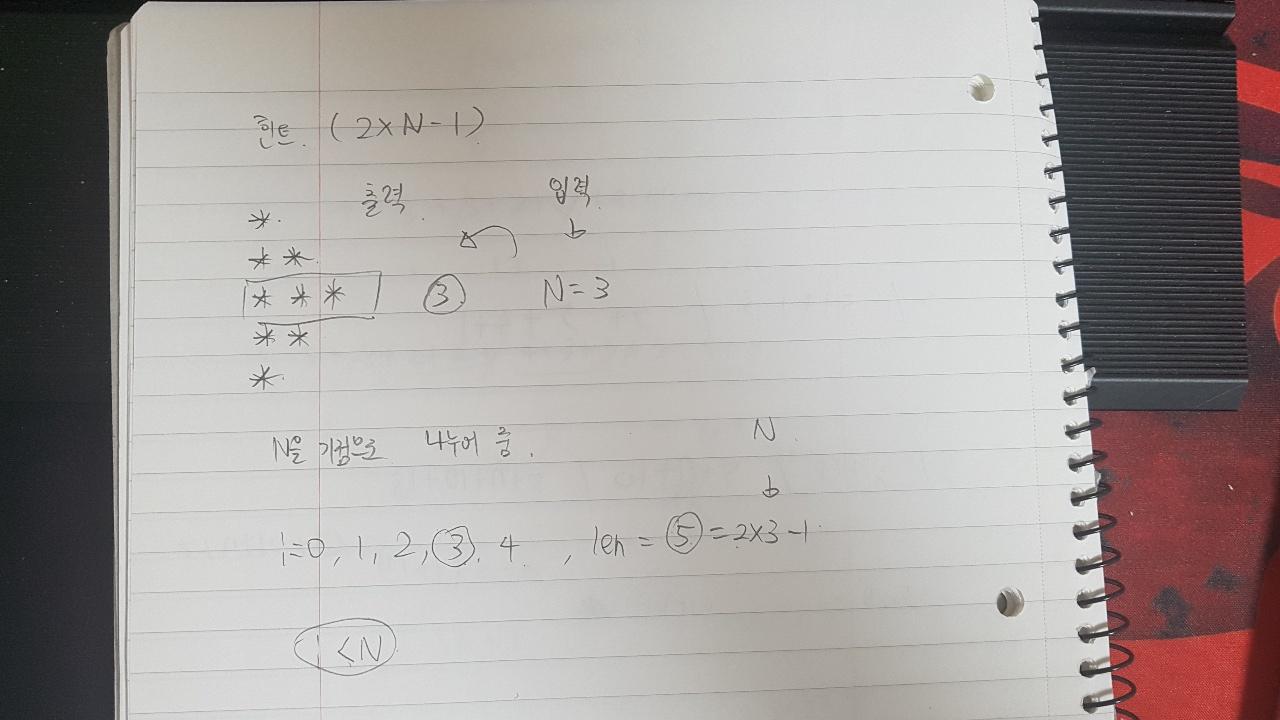 라고 했으니 입력이 N=3이 들어왔을 때 출력이 총 5줄에 걸쳐 찍히기 때문에 기준을 N으로 잡아서 풀면 되겠다는 생각이 들었다.